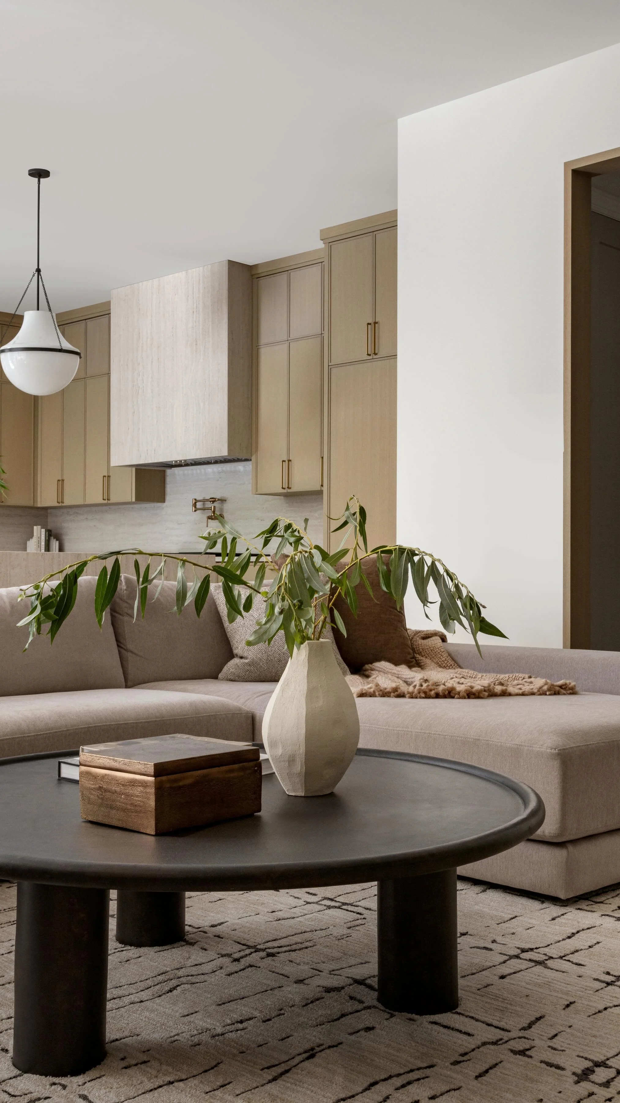 This renovation reimagined the home through the lens of wabi-sabi, transforming dated spaces into a warm and intentional retreat. Walls were opened to create flow and natural light, finishes were simplified to highlight organic textures, and custom millwork introduced balance between functionality and calm minimalism. By layering wood and subtle earthy tones, the renovation honors the beauty of imperfection while giving the home a refreshed and timeless character.